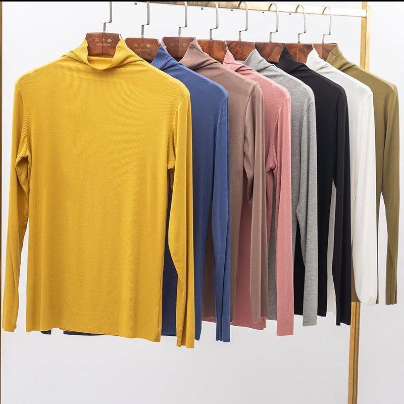 半高领打底衫女装秋冬薄款洋气莫代尔堆堆领长袖t恤...