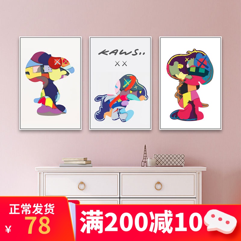 kaws x 史努比装饰画涂鸦卡通儿童房床头壁画潮流潮...