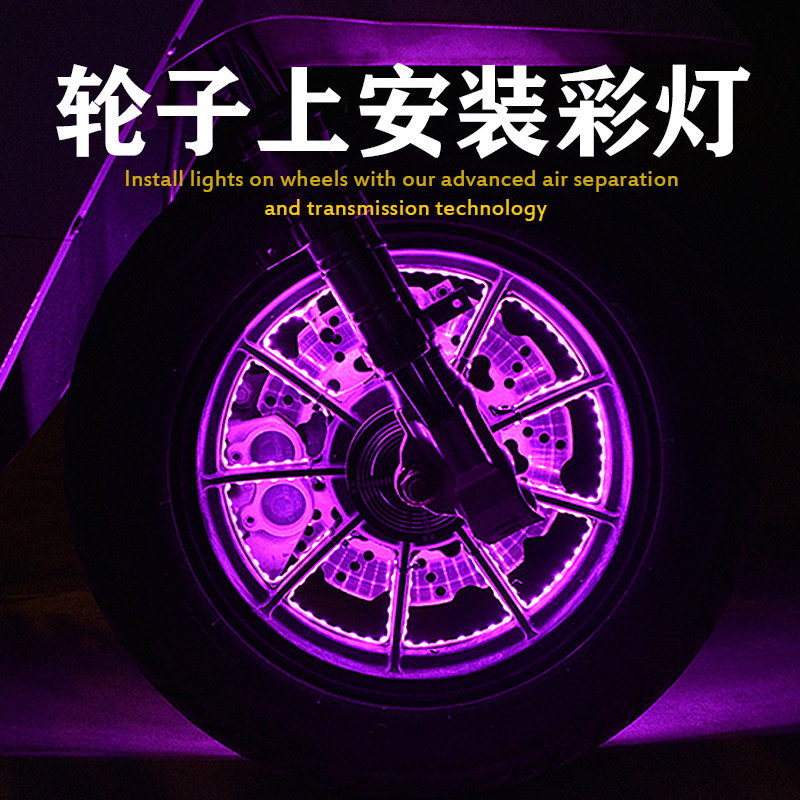 机车摩托车电动车轮子改装彩灯无线供电风火轮led轮...