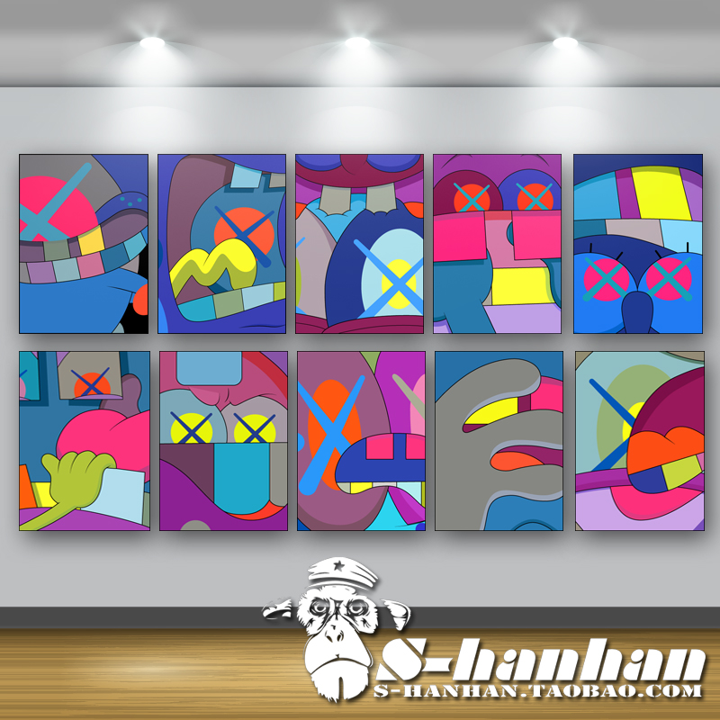 kaws 潮流创意卡通客厅卧室无框画壁画现代装饰画背...
