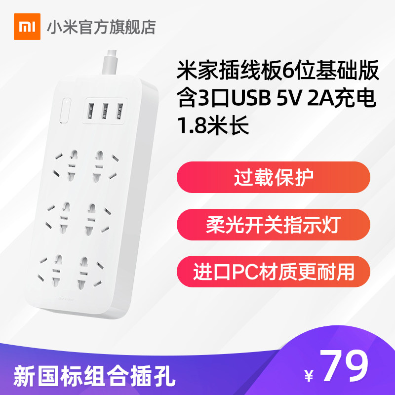 小米米家插线板6孔位基础版usb多功能家用接线板插座