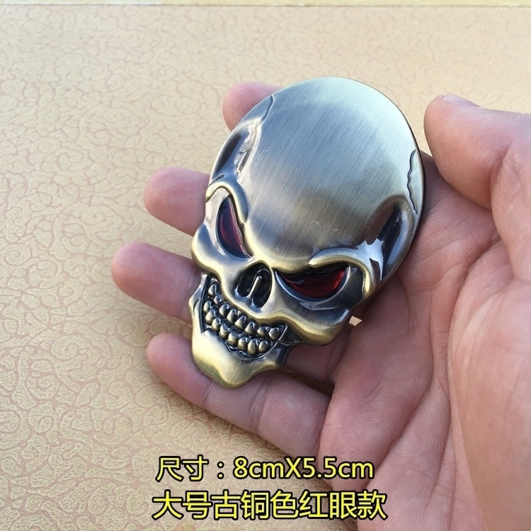 加大款骷髅头金属贴标立体改装贴后尾标装饰贴摩托...