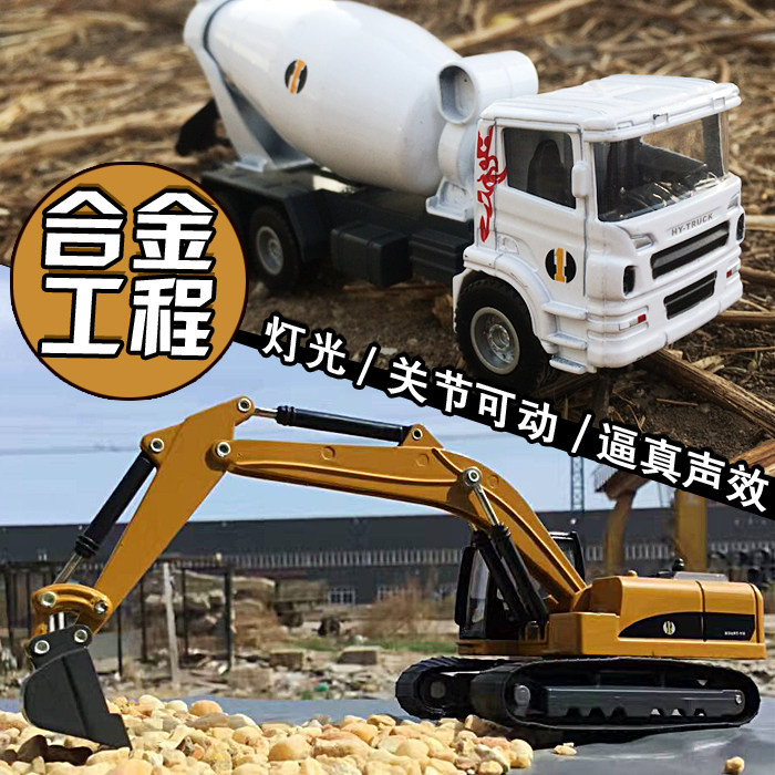 仿真成真合金车工程车模型叉车推土机挖掘机铲车儿...