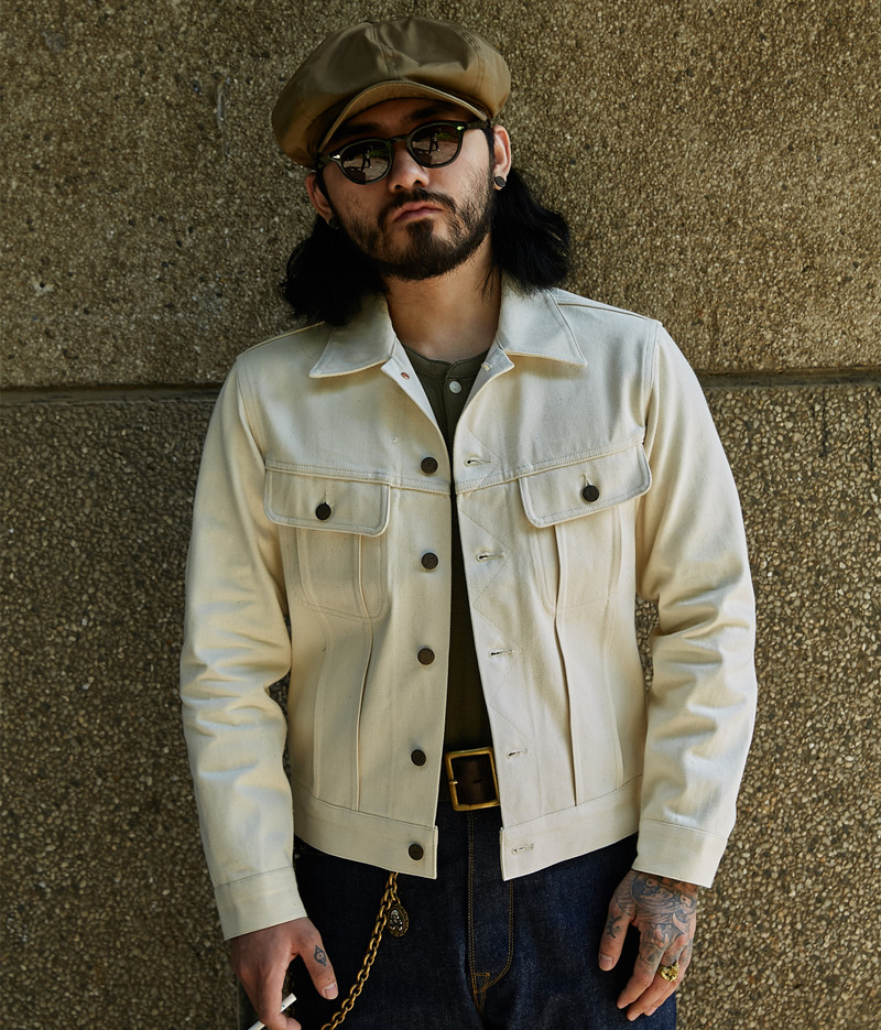 Labour union 原棉白红边牛仔夹克外套美国棉纱JK-164