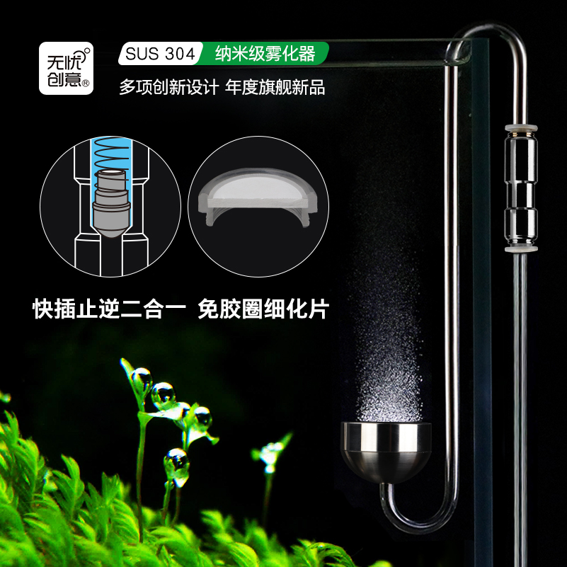 【无忧创意】304不锈钢co2细化器 水草缸二氧化碳设备