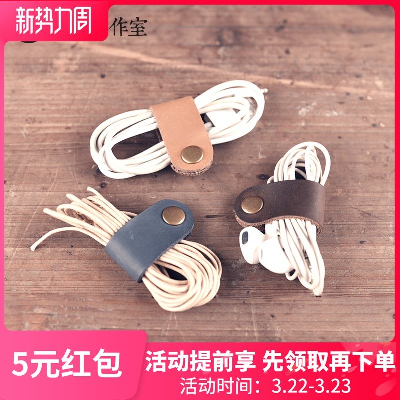 [子艺]手工皮具牛皮绕线器复古USB收纳整理数据线按...