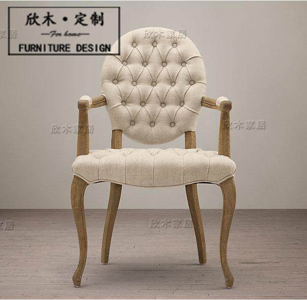 法式乡村圆靠背扶手椅美式实木做旧餐椅简约仿古书...
