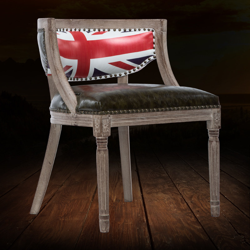美式复古实木餐椅欧式做旧橡木扶手椅酒店会所咖啡...