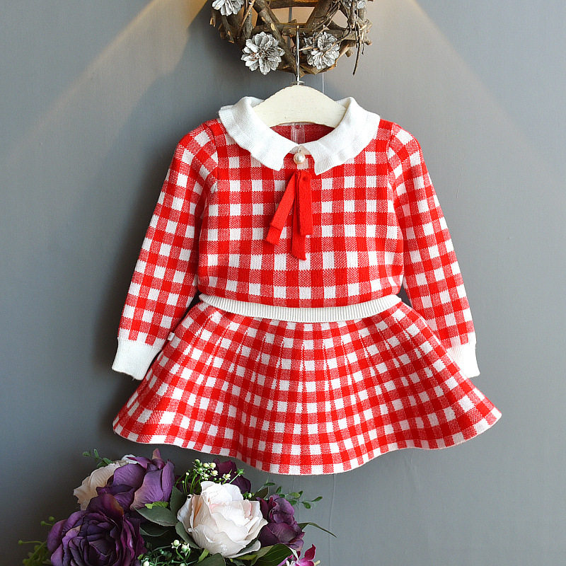 童装批 发厂家直批2019秋新款女童格子毛衣洋气针织...