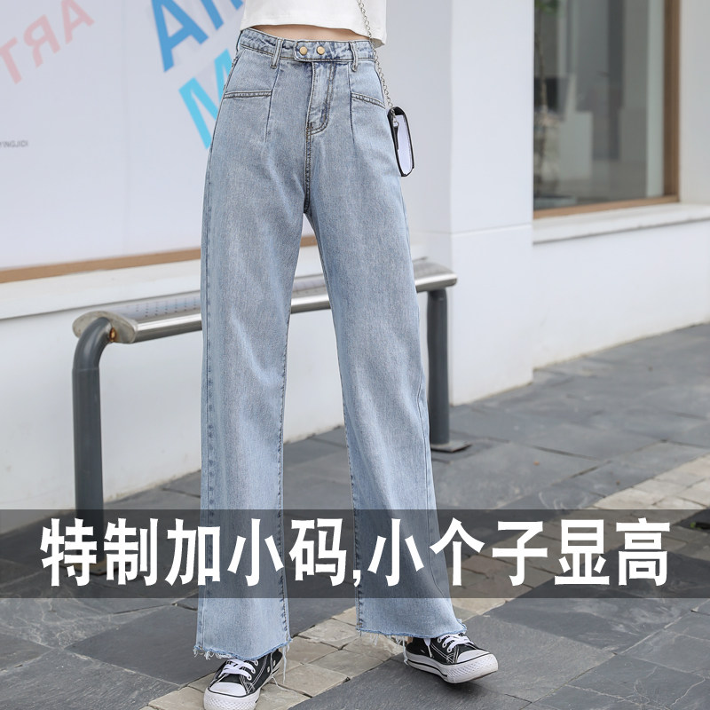 150cm小个子显高超薄高腰宽松泫雅老爹牛仔裤女夏天...