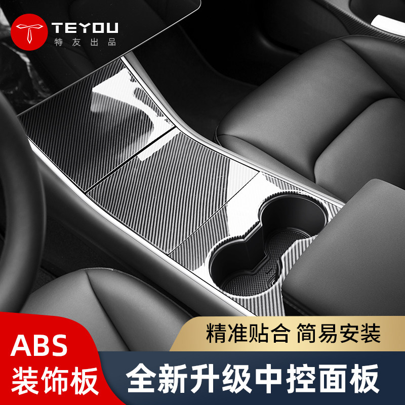 特斯拉model3中控贴膜碳纤维中控面板贴片防刮指纹...