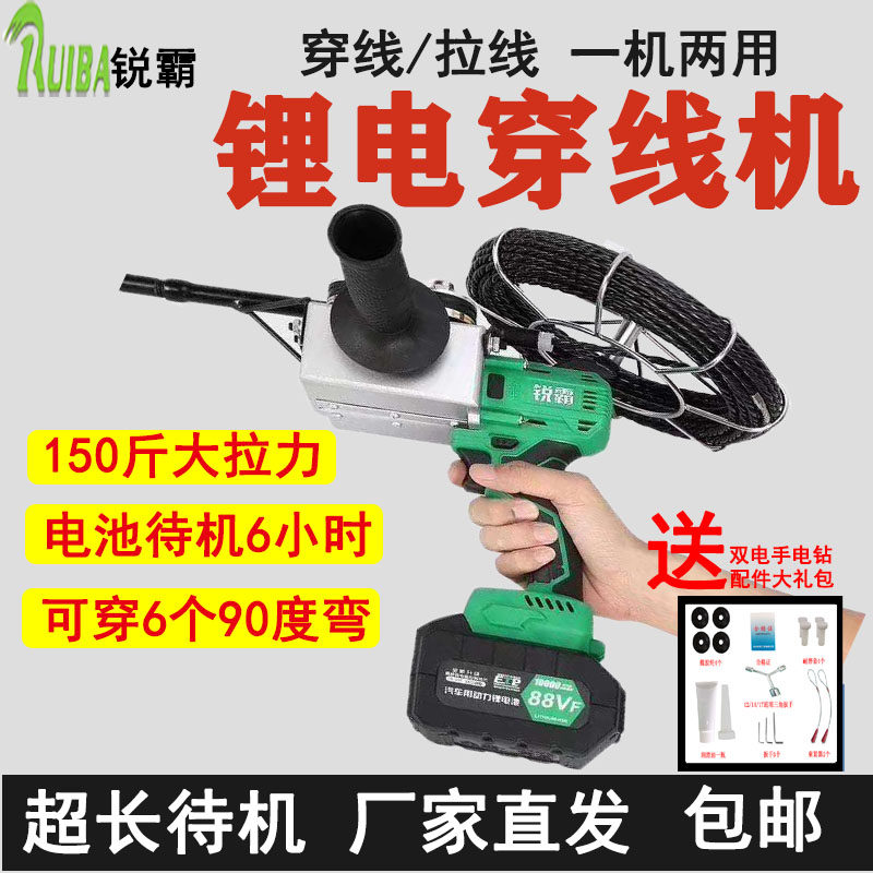 锐霸穿线机穿线器全自动锂电穿管器电动拉线电工放...