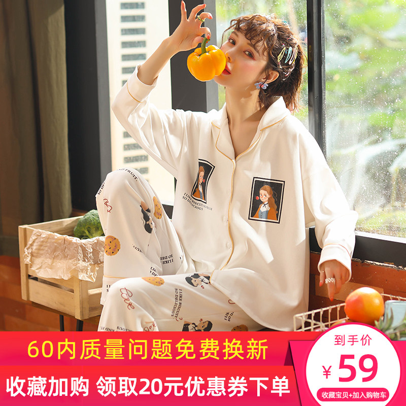 长袖睡衣女纯棉学生春秋韩版可爱清新家居服女可出...