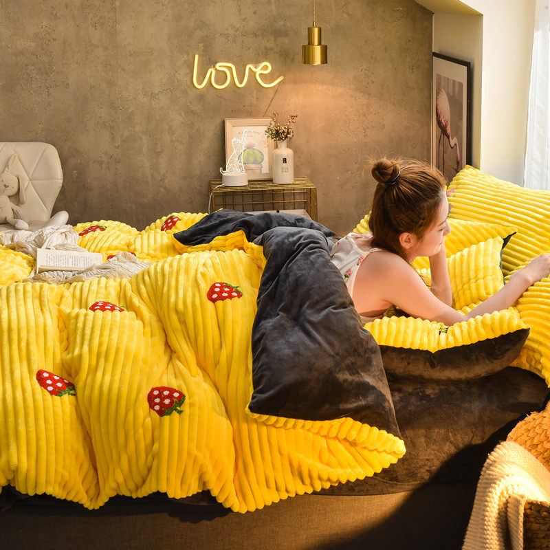 冬季加厚珊瑚绒四件套女双面法兰绒床单被套保暖法...