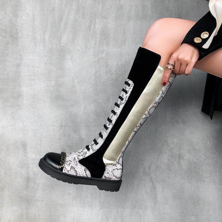 2019新款鞋系带厚底松糕过膝靴马丁靴机车靴长靴女...