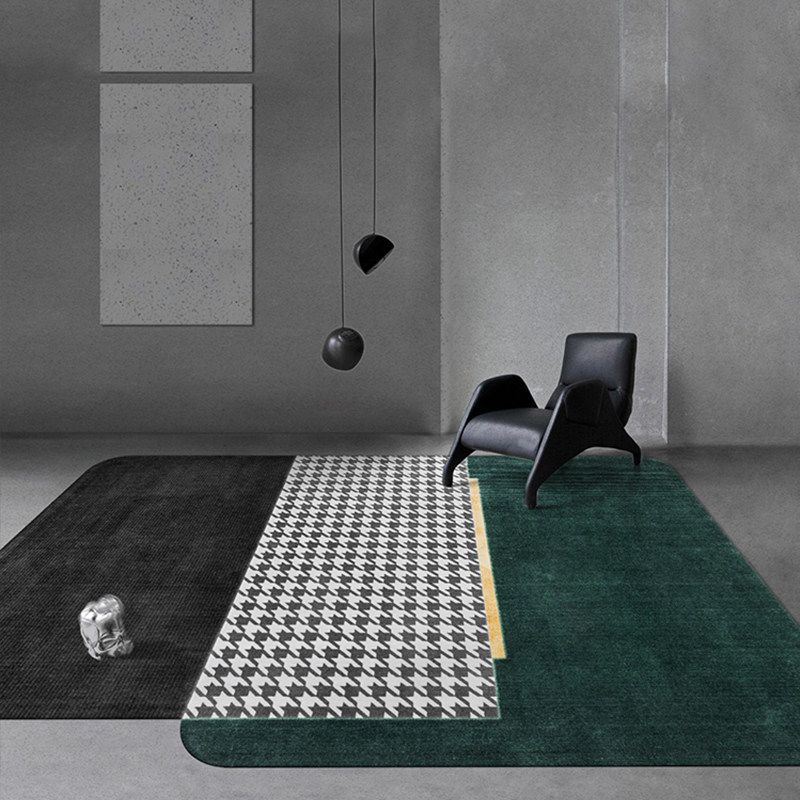 卡乐美轻奢地毯客厅茶几垫黑绿千鸟格异形设计现代...