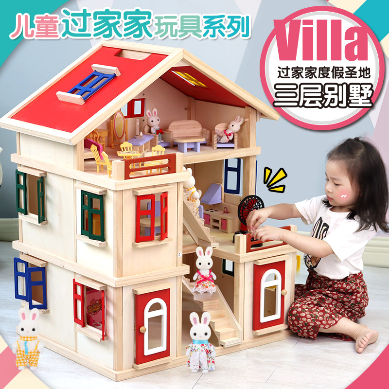儿童木制过家家城堡仿真别墅玩具屋男女孩木质娃娃...