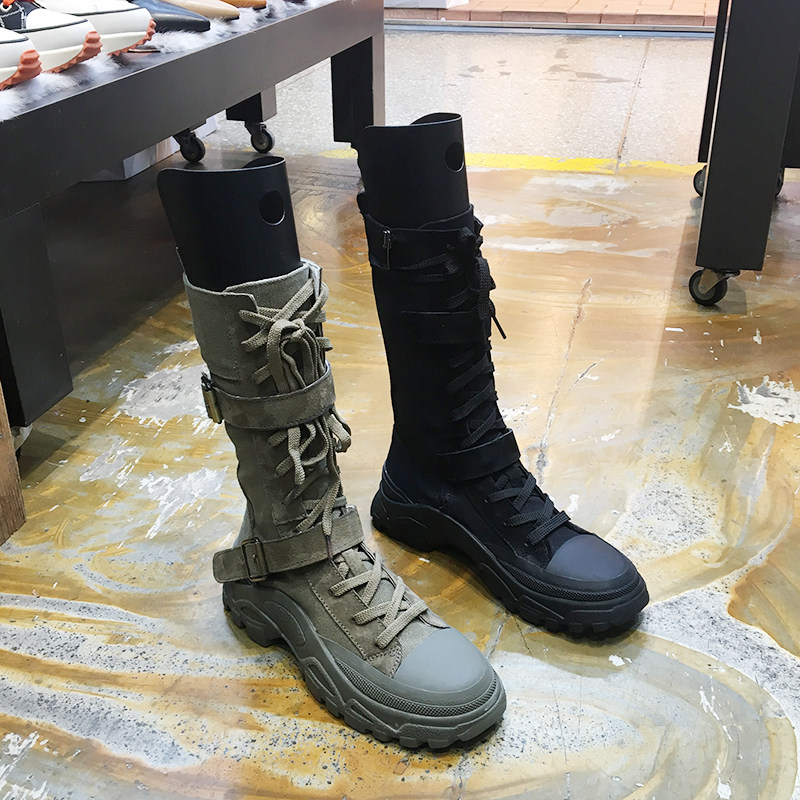 MISS SU韩国女靴2020新ins真皮帅气厚底欧美帆布中...