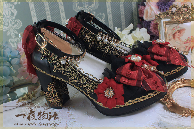 原创【一夜物语】仿古风欧式lolita手作花嫁高跟鞋...