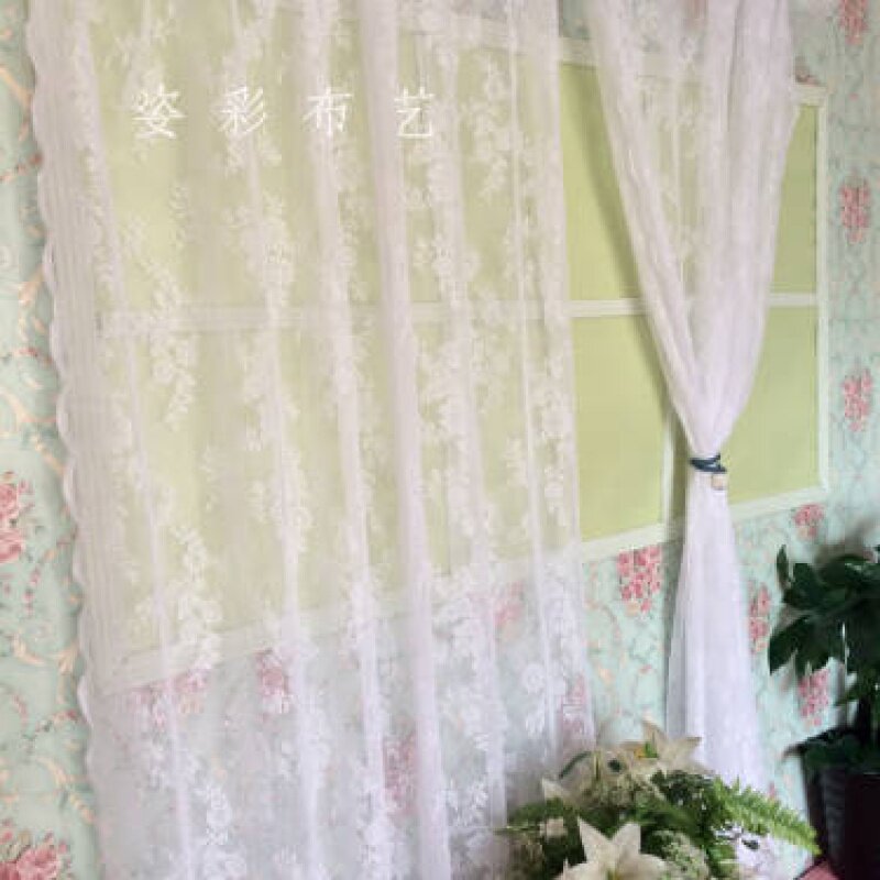可定制韩式蕾丝免打孔穿杆白纱窗帘成品飘窗阳台客...