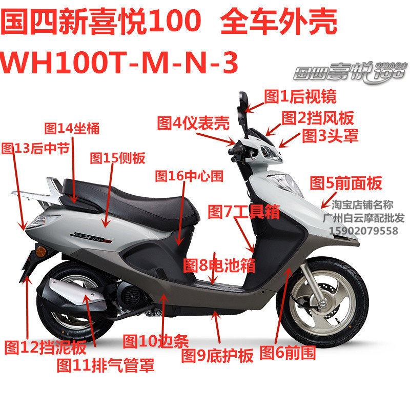 本田国四新喜悦小公主WH100T-MN3前面板灯箱前围边...