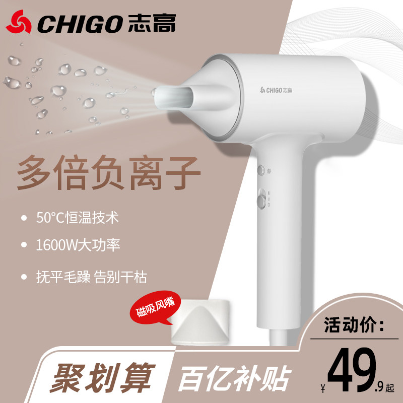 志高吹风机家用电吹风大功率学生宿舍静音网红负离...
