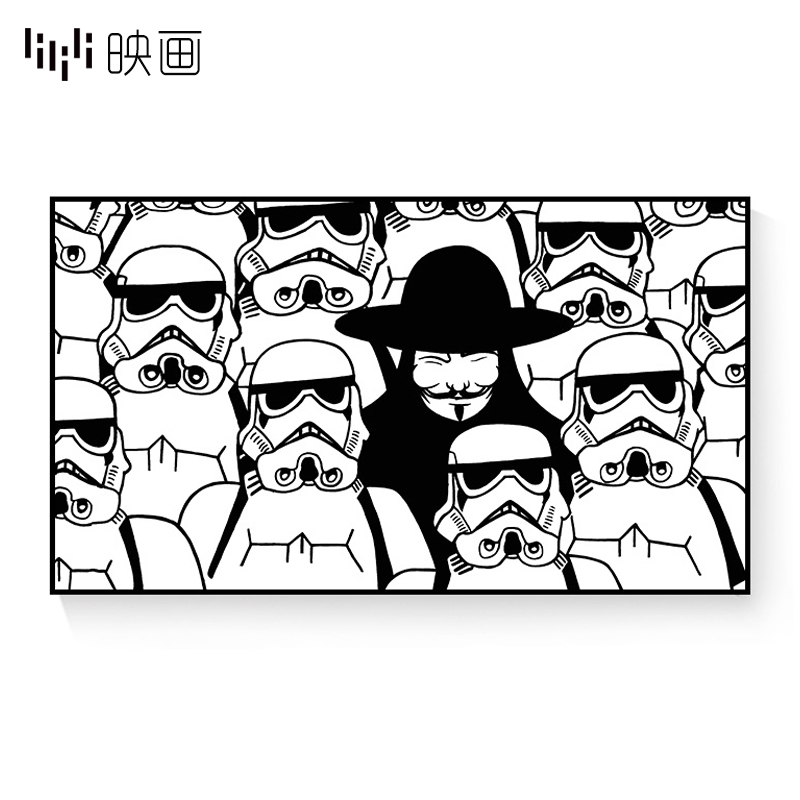 沙发墙装背景画卡通壁画客厅横幅挂画简约现代黑白...