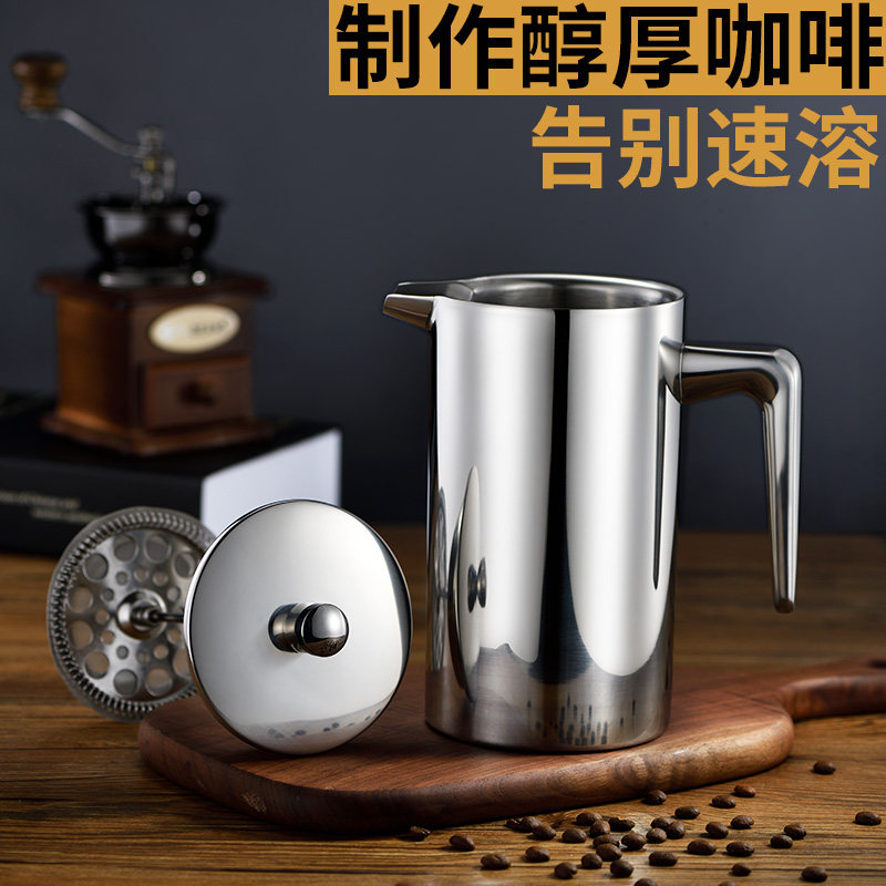 食品级304不锈钢加厚法压壶手冲咖啡壶家用过滤网冲...