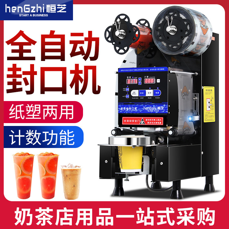 恒芝封口机奶茶店设备商用豆浆饮料全自动封口机纸...