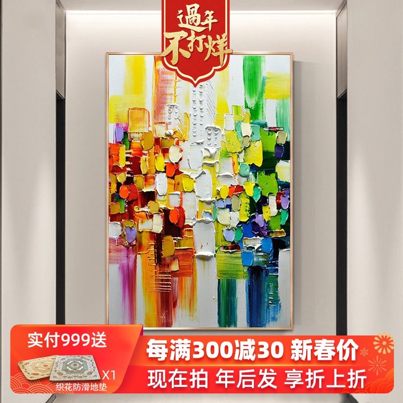 现代简约手绘油画北欧抽象装饰画玄关挂画美式样板...