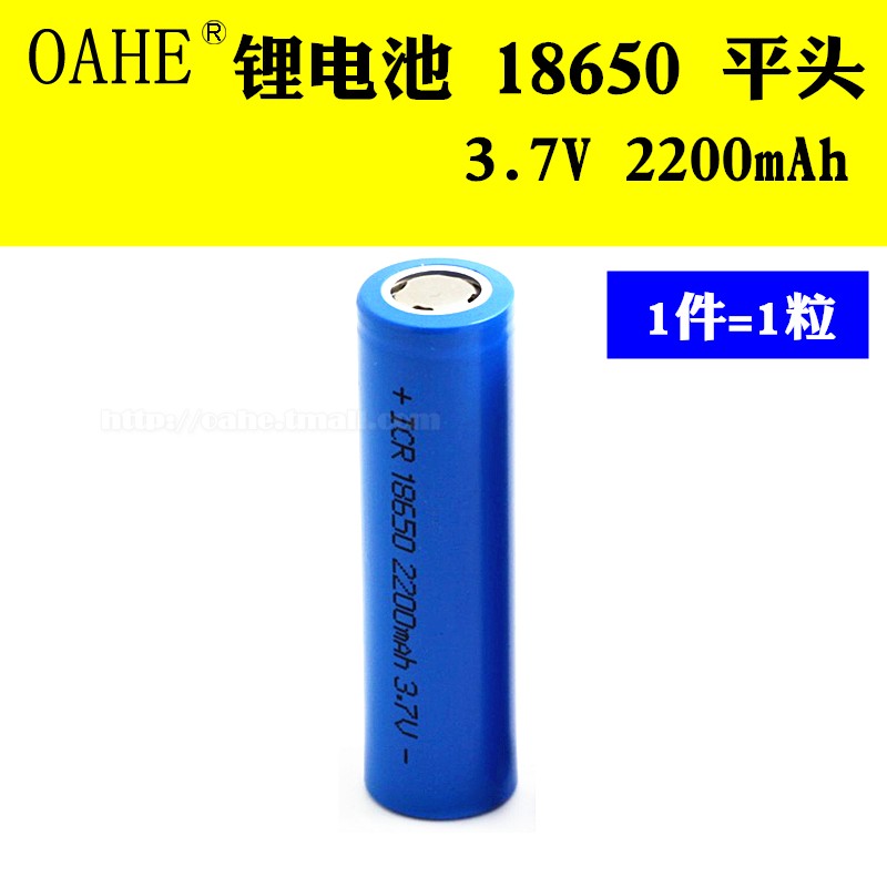 平头 可充电锂离子电池18650 3.7V 2200mAh手电筒头...
