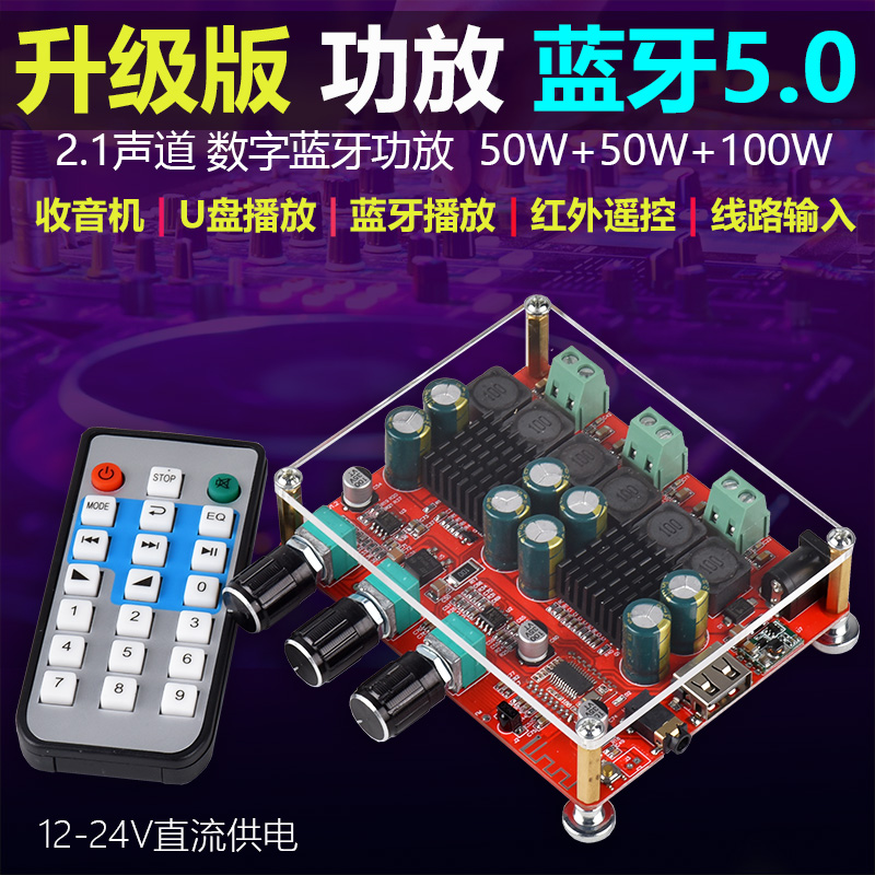 全新蓝牙5.0功放板2.1声道DIY发烧友改装功放模块U...