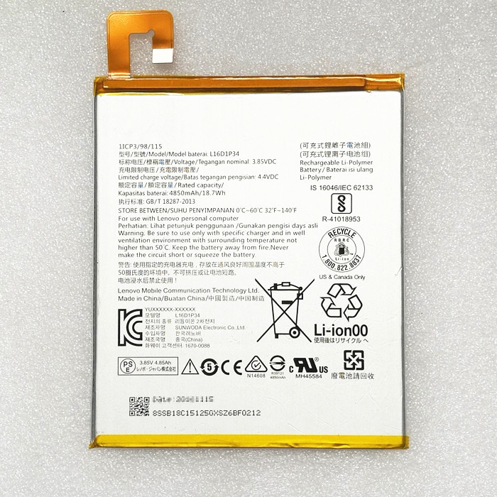 L16D1P34P32联想PB2-670N电池TB8504N原装PHAB2平板...