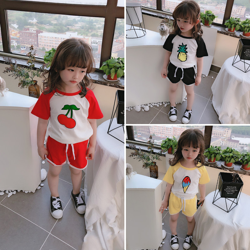 女童2020夏季新款运动套装 儿童洋气撞色T恤+舒适白...