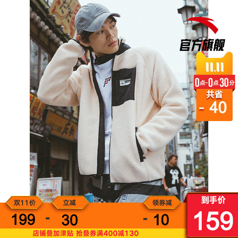 安踏外套男羊羔绒2019秋冬季新款拉链开衫立领无帽...
