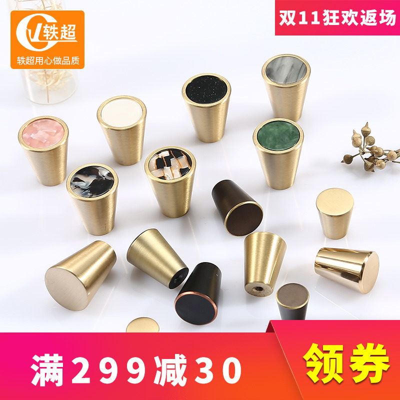 柜门拉手单孔圆形黄铜衣柜抽屉把手纯铜橱柜柜子全...