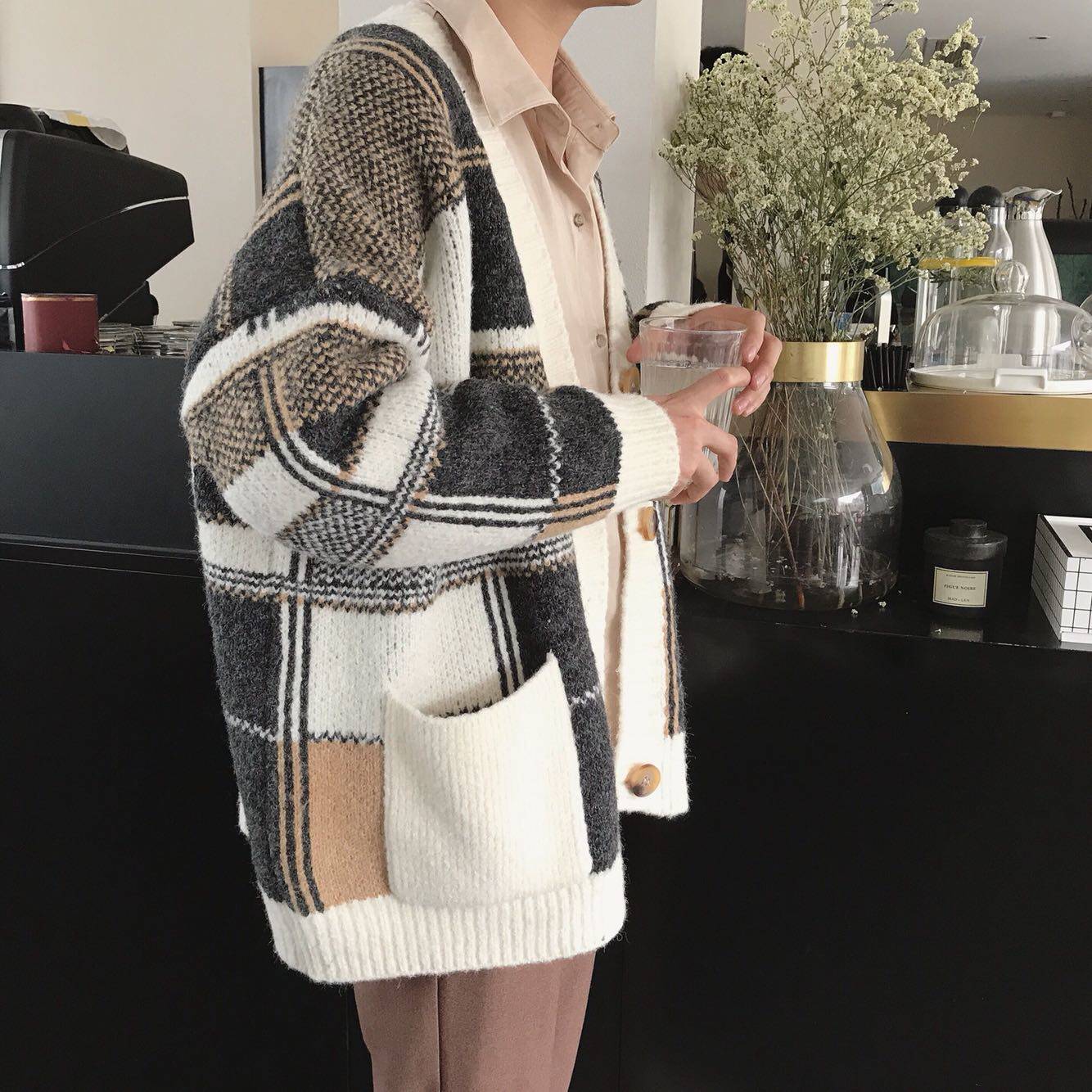 37 / 春款新品 多色格纹毛线针织开衫毛衣外套韩版...
