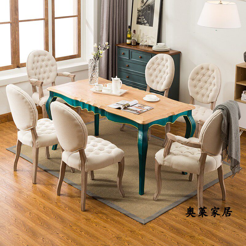 美式乡村客厅家用餐桌椅 欧式实木复古酒店餐桌 新...