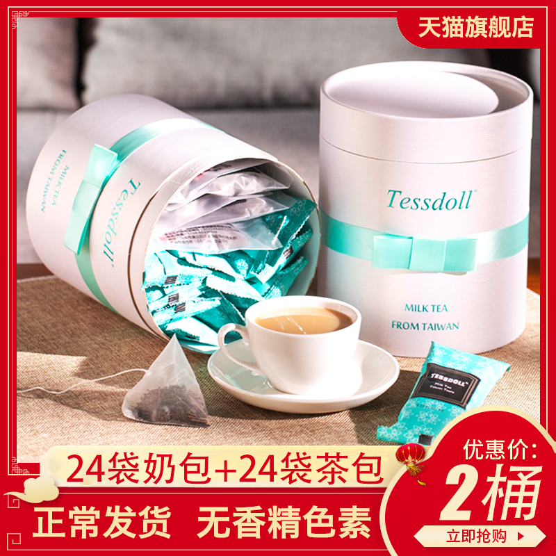 2桶 Tessdoll台湾台仕朵手工网红奶茶袋装小包冲饮...