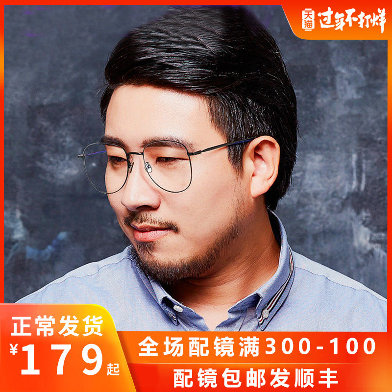 大脸纯钛近视眼镜成品潮人男士复古眼镜框大码情侣...