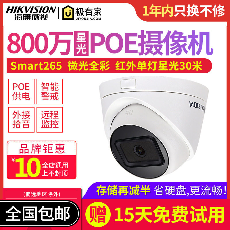 海康威视星光级800万POE摄像头网络4K监控机器DS-2C...