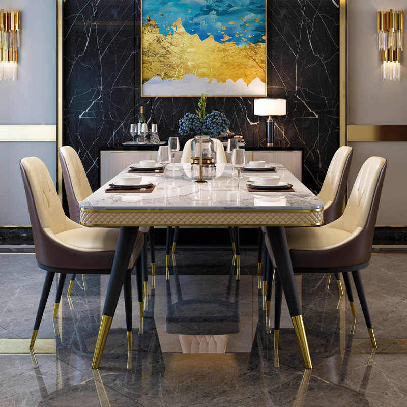 轻奢餐桌椅组合简约后现代大理石长方形小户型家用...