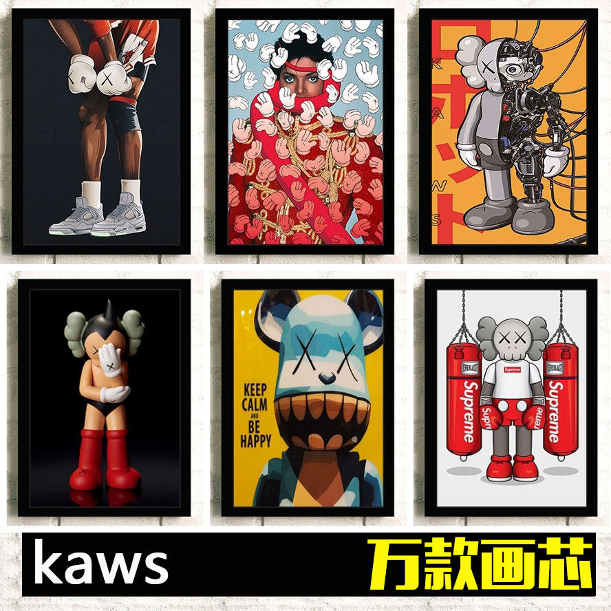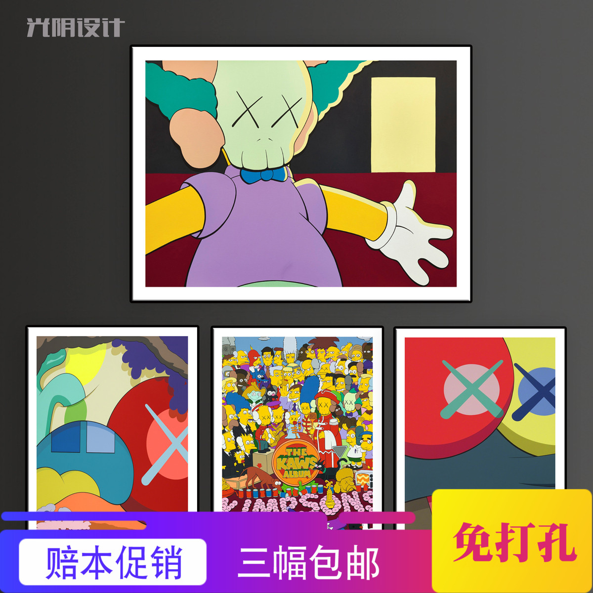 kaws挂画创意潮流卡通装饰画芝麻街客厅卧室潮牌海...