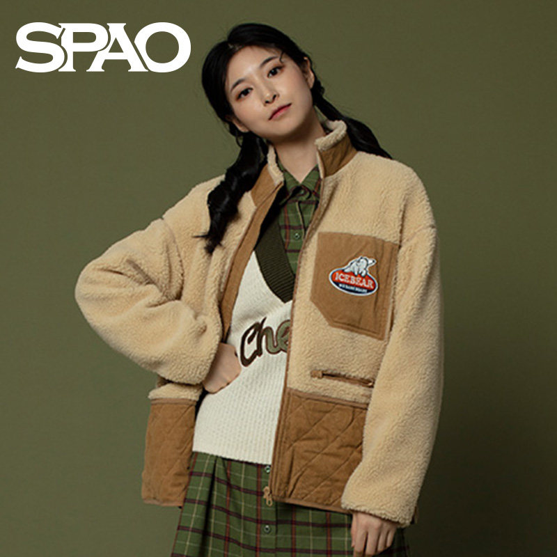 SPAO咱们裸熊联名情侣羊羔绒外套2019秋冬新款韩版S...