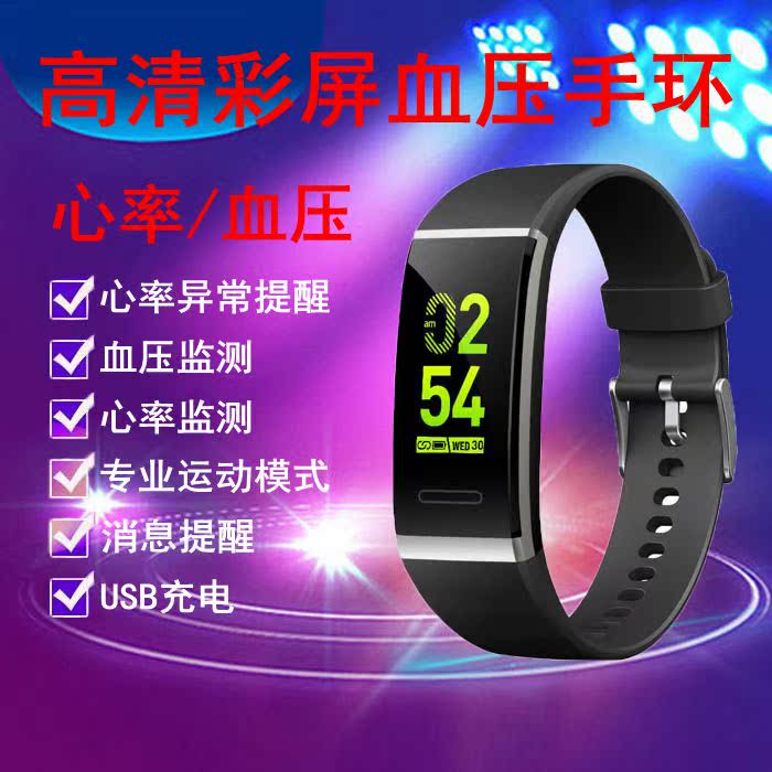 彩屏智能手环电子血压测量仪家用老人运动计步器健...