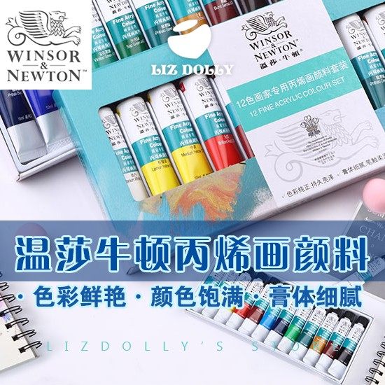 温莎牛顿画家用12色丙烯套装手绘墙绘纺织绘画颜料...