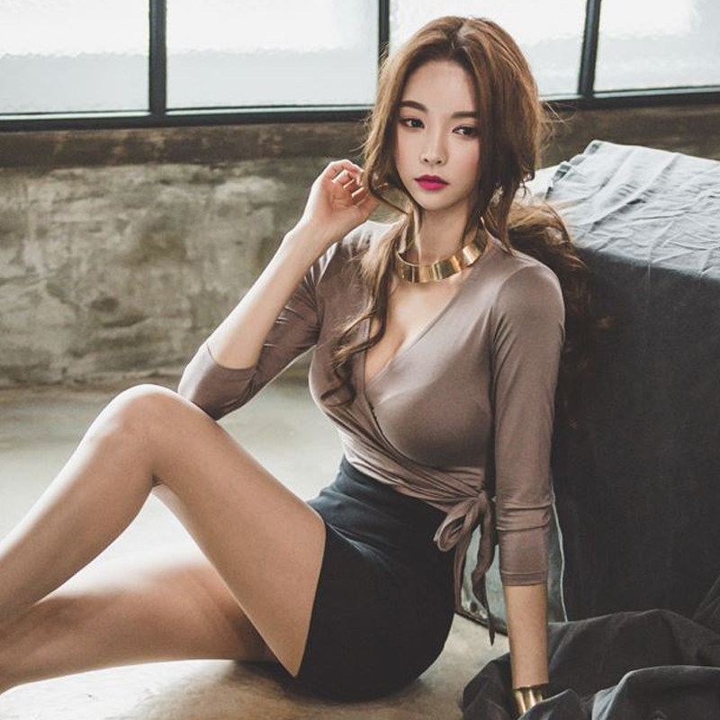 性感白领职业OL伪娘连衣裙套装 V领长袖衬衣女装大...