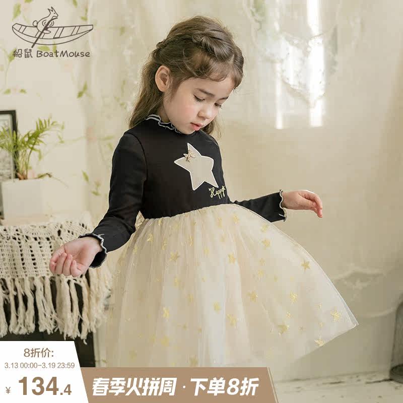 船鼠童装女童连衣裙春秋款长袖2020新款木耳边圆领...