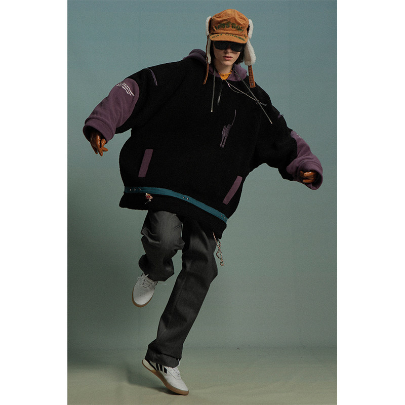 UNVESNO AW19 猫咪双面穿休闲潮牌保暖宽松羊羔毛摇...