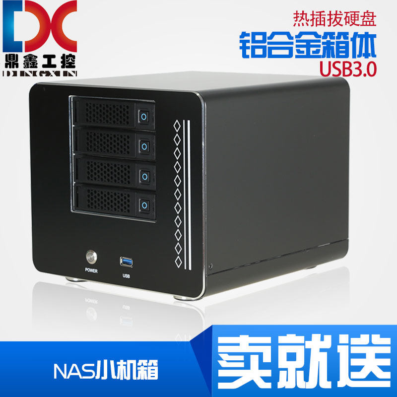 NAS机箱 4盘热插拔铝合金 MINI电影服务器 存储 黑...